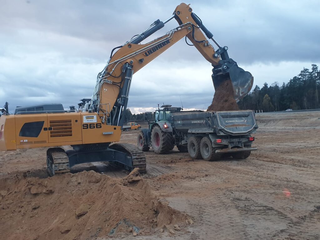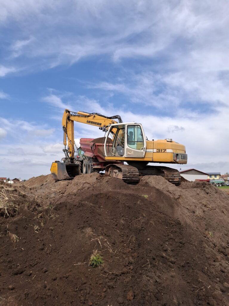 Darüber hinaus übernehmen wir Transporte von Schüttgütern wie Frostschutz oder Zuckerrüben und stehen Ihnen für vielseitige Baggerarbeiten zur Seite.